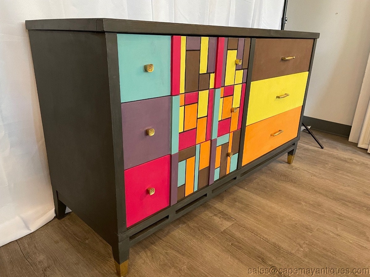 Mid Century Modern Multi Colored Funky Dresser 6 Drawers Original Hardware Etsy